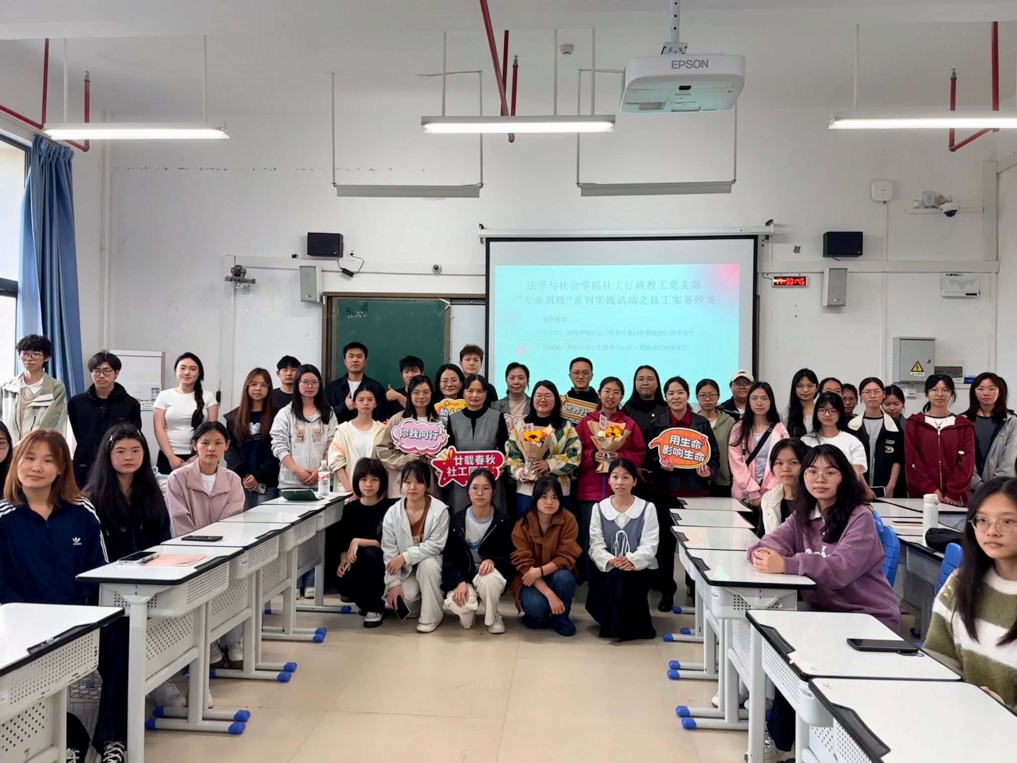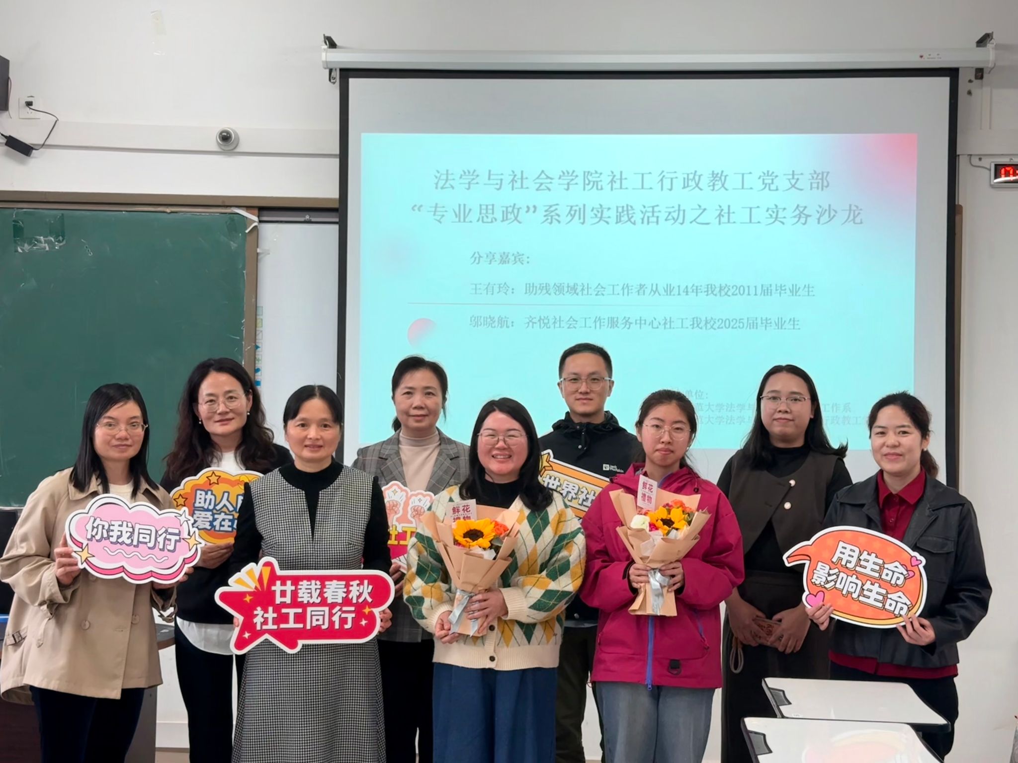 为深化“专业思政”建设,促进社会工作理论与实务深度融合,搭建在校学子与优秀校友的交流平台,3月17日下午,在第二十个世界社会工作日之际,我院社会工作系、社工行政教工党支部在五合校区文综603联合举办了“专业思政”系列实践活动之社工实务交流会。
